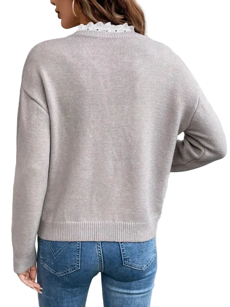 Céline | Chic Suéter de Punto con Elegante Cuello de Encaje