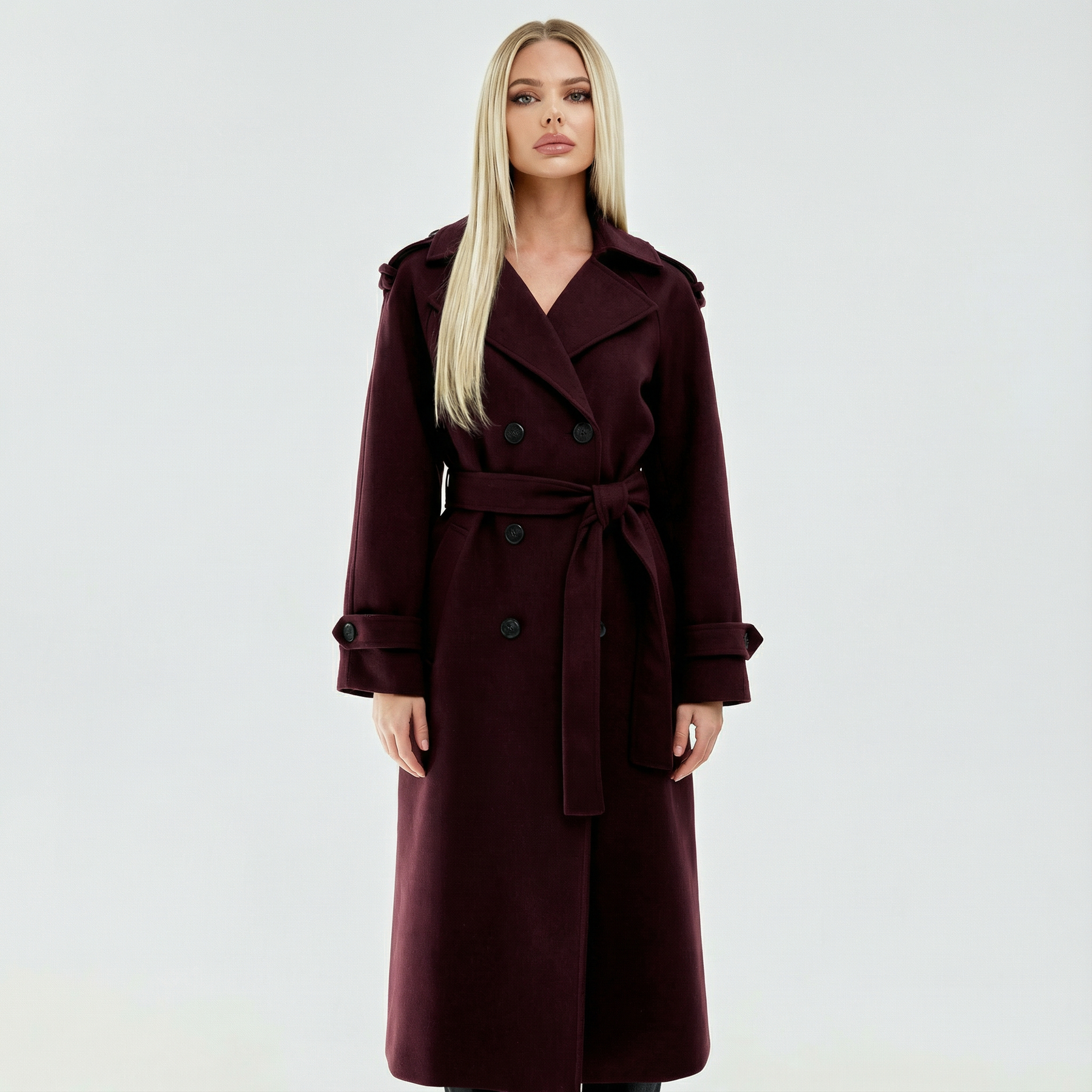 Este trench largo en tono burdeos destaca por su elegancia contemporánea y su caída impecable. Su silueta fluida aporta movimiento y presencia, mientras que el color profundo añade un toque sofisticado y atemporal que combina fácilmente con cualquier look. Es una prenda pensada para quienes buscan estilo sin esfuerzo, capaz de transformar un conjunto sencillo en algo refinado.