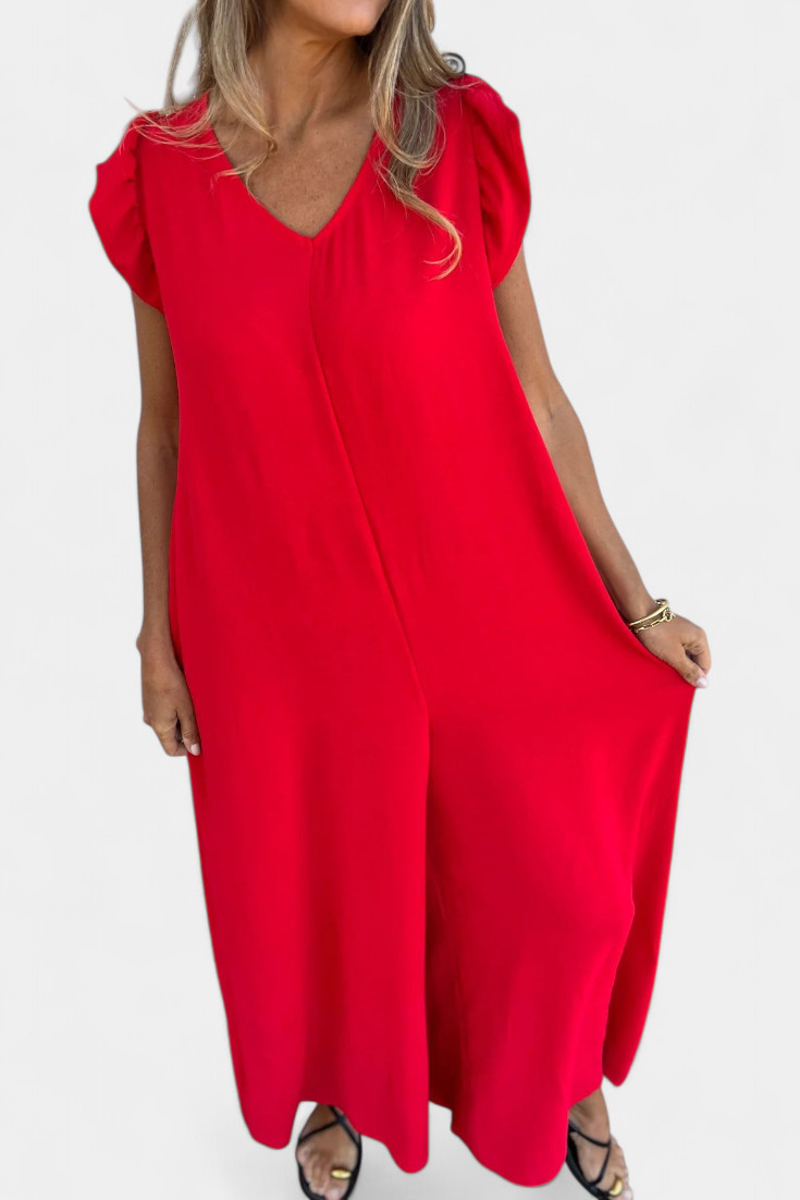 El mono Isela canaliza una energía salvaje y chic con su estampado de leopardo y silueta relajada. El escote en V alarga visualmente el cuello, mientras que los bolsillos frontales aportan funcionalidad con estilo. Una prenda ideal para destacar sin esfuerzo en días casuales o escapadas espontáneas.